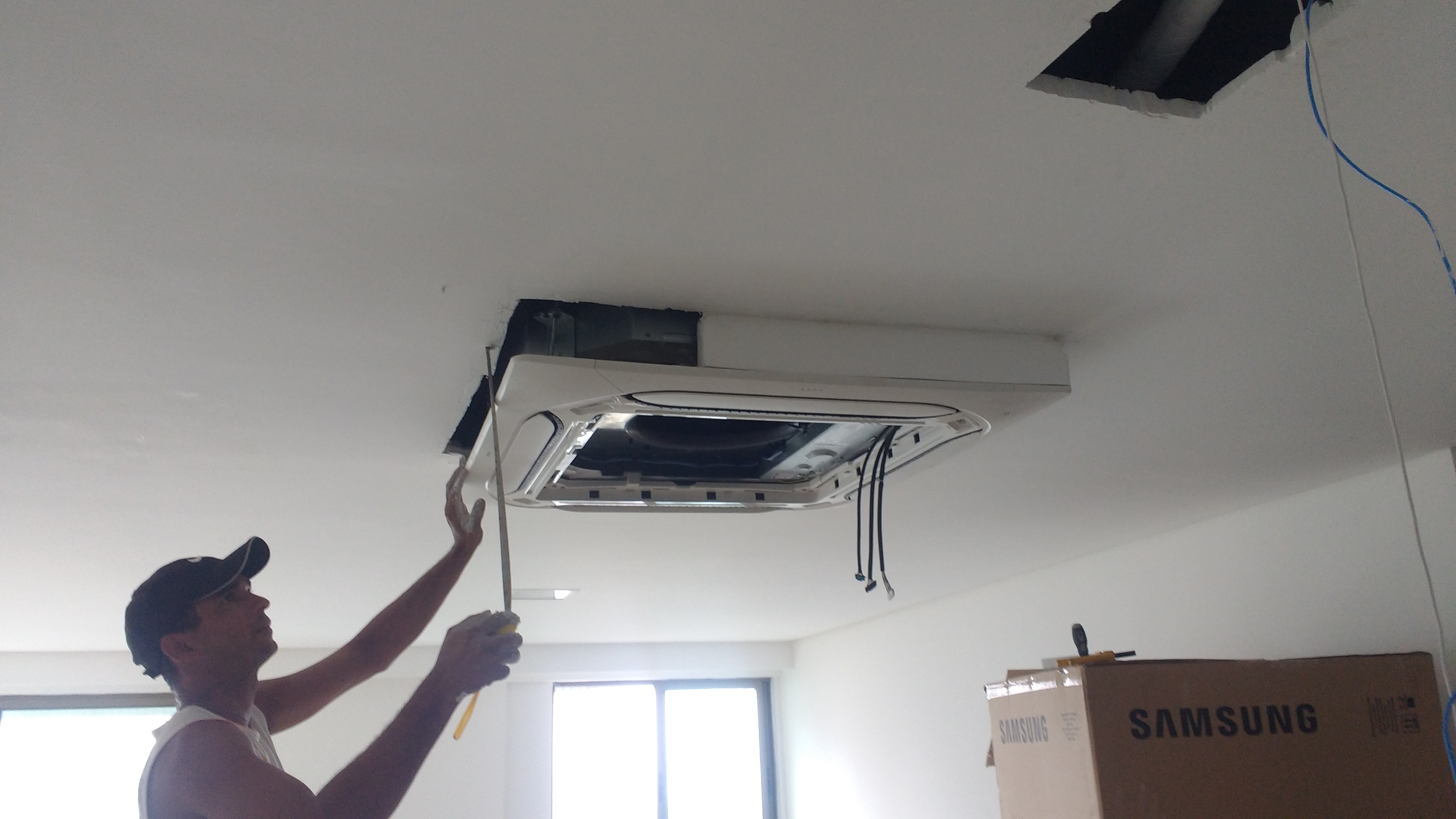 Devido nos termos uma situação atípica, com todos os eletro dutos, passarem naquele ponto, e não estarmos com o projeto em mãos, foi contratado um gesseiro de emergência por solicitação do cliente, para ser feito uma moldura, e assim concluir o serviço..